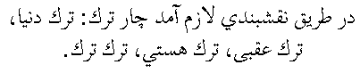 Yani, "Tarik-i Nakşîde dört şeyi bırakmak lâzım: Hem dünyayı, hem nefis hesabına âhireti dahi maksud-u hakikî yapmamak, hem vücudunu unutmak, hem ucbe, fahre girmemek için bu terkleri düşünmemektir. Demek hakikî marifetullah ve kemâlât-ı insaniye terk-i mâsivâ ile olur.