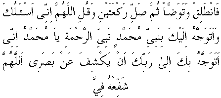 Osman diyor ki: Resul-i Ekrem Aleyhissalâtü Vesselâmın yanına bir âmâ geldi, dedi: "Benim gözlerimin açılması için dua et." Resul-i Ekrem Aleyhissalâtü Vesselâm ona ferman etti: