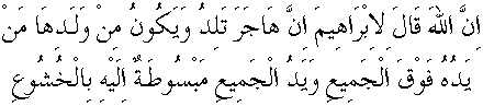 Yani, "Hazret-i İsmail'in validesi olan Hâcer, evlât sahibesi olacak. Ve onun evlâdından öyle birisi çıkacak ki, o veledin eli, umumun fevkinde olacak ve umumun eli huşû ve itaatle ona açılacak."5