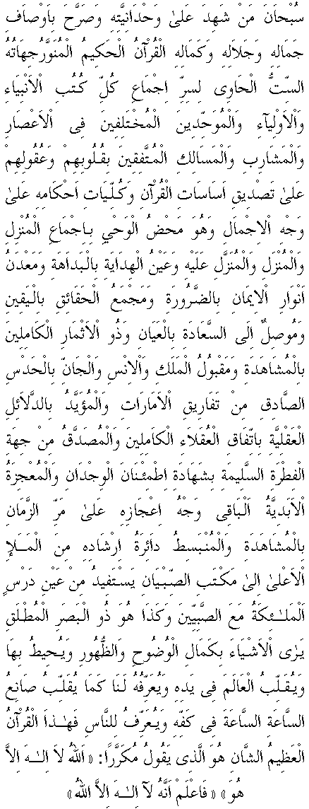 Hem onu dinleyen bütün ehl-i hakikat, keşif ve tahkikle tasdik etmişler ve ilmelyakîn iman etmişler ki, o kendi kendine konuşmuyor; belki Hâlık-ı Kâinat onu konuşturuyor, ders veriyor, onunla ders verdiriyor.