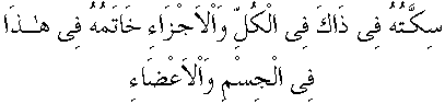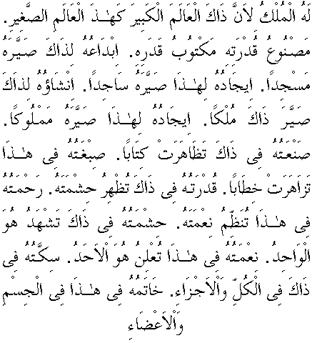 hüccet-i kübrâsı, lâtif bir zamanda ve lâtif bir hatırada, Arabî ibaresinde, şu