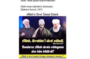 Onlar, hoşlarına gidenlere: “Falanlar, filanlar Allah’ın velisidir” derler. Biz, Kur’an’ın veli tanımına inanır, “Allah, inananların velisidir” deriz. (Bakara, 2/257) ֍ Onlar, Allah’a veli isnat eder, “Bunlar bizim evliyalarımızdır” derler. Biz, Allah’ı bırakıp da “O’ndan başka velilerin peşinden gitmeyin.” deriz. (A’râf, 7/3) ֍ Onlar: “Allah’a giden yollar çoktur, istediğiniz yoldan …