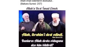 Onlar, hoşlarına gidenlere: “Falanlar, filanlar Allah’ın velisidir” derler. Biz, Kur’an’ın veli tanımına inanır, “Allah, inananların velisidir” deriz. (Bakara, 2/257) ֍ Onlar, Allah’a veli isnat eder, “Bunlar bizim evliyalarımızdır” derler. Biz, Allah’ı bırakıp da “O’ndan başka velilerin peşinden gitmeyin.” deriz. (A’râf, 7/3) ֍ Onlar: “Allah’a giden yollar çoktur, istediğiniz yoldan …
